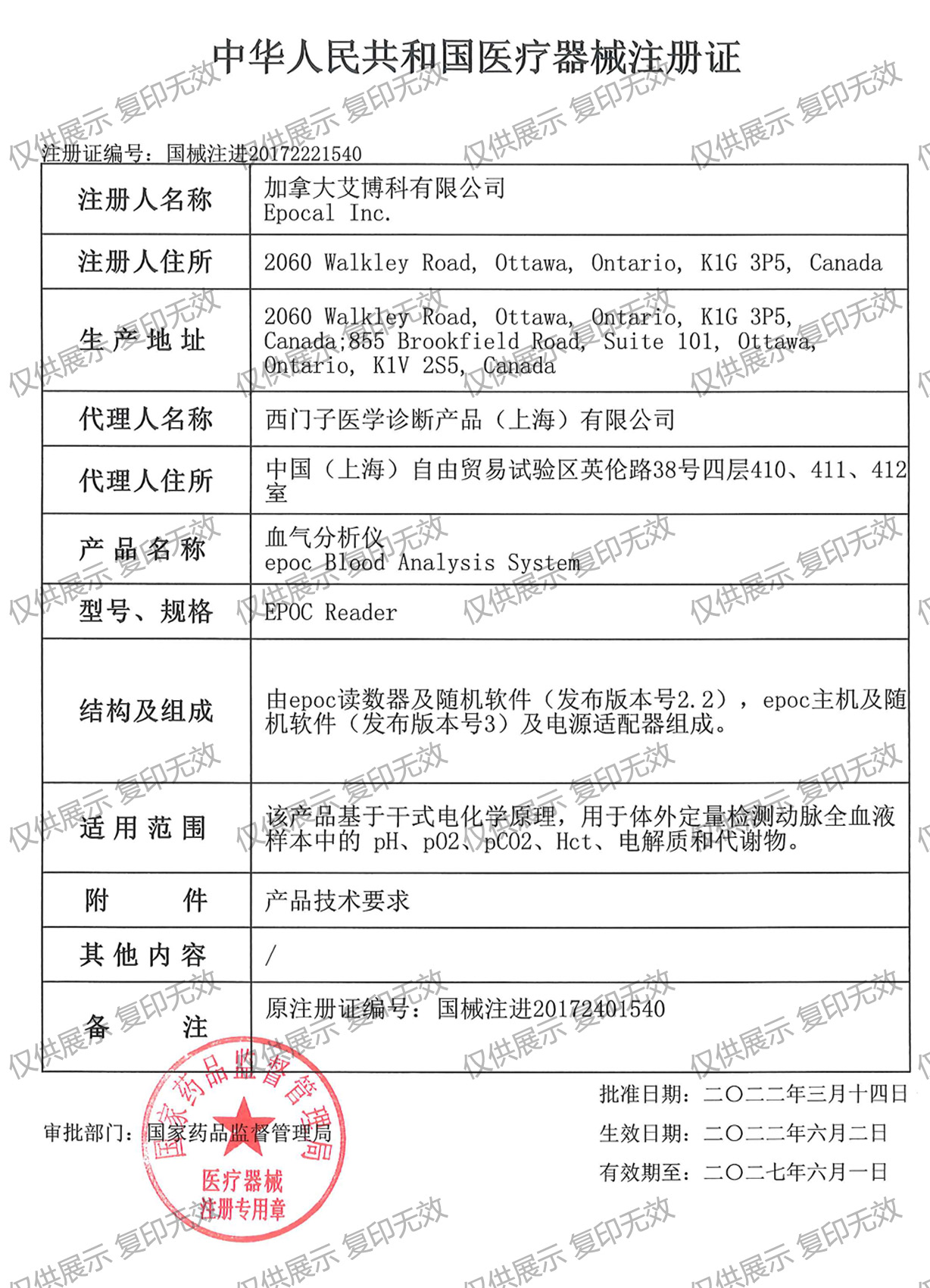 適用范圍:該產(chǎn)品基于干式電化學(xué)原理,用于體外定量檢測(cè)動(dòng)脈全血液樣本中的 pH、pO2、pCO2、Hct、電解質(zhì)和代謝物。