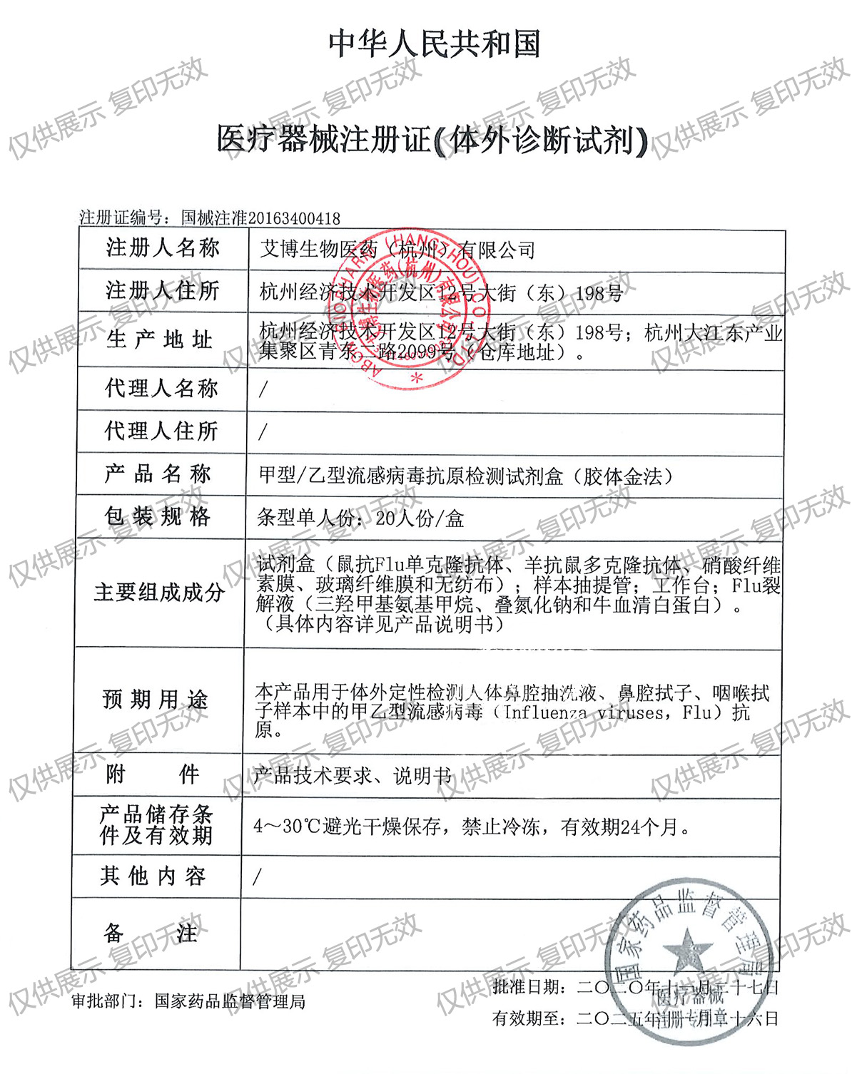 適用范圍:本產(chǎn)品用于體外定性檢測(cè)人體鼻腔抽洗液、鼻腔拭子、咽喉拭子樣本中的甲乙型流感病毒(Influenza viruses,F(xiàn)lu)抗原。